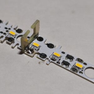 KATO用基板を使わずに、帯状にした金属板を使って直接室内灯にはんだだづけします。