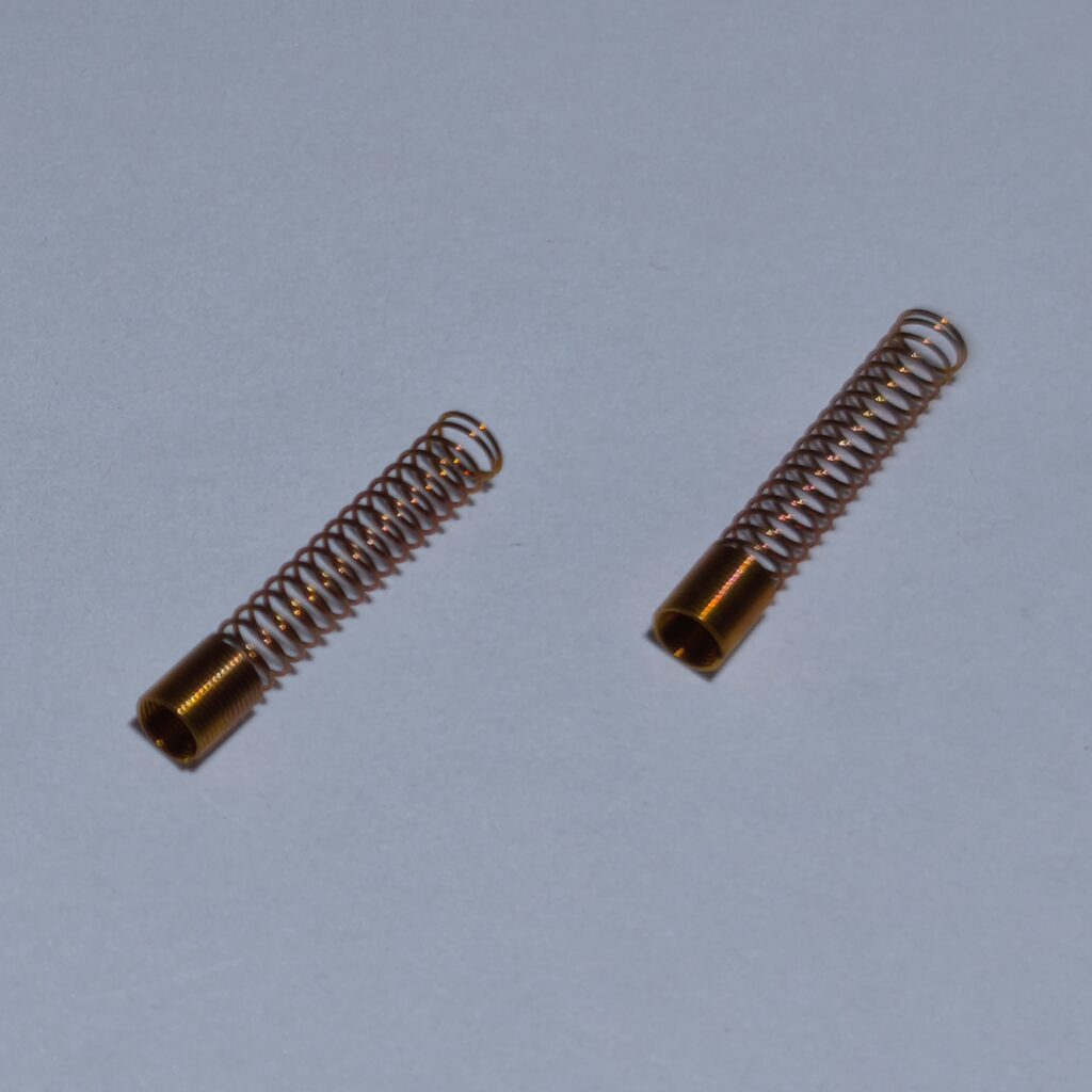 T社ほか用に使用できるスプリングです。 長さ約15mmでリン青銅製のため、しっかりとしたばね性があります。